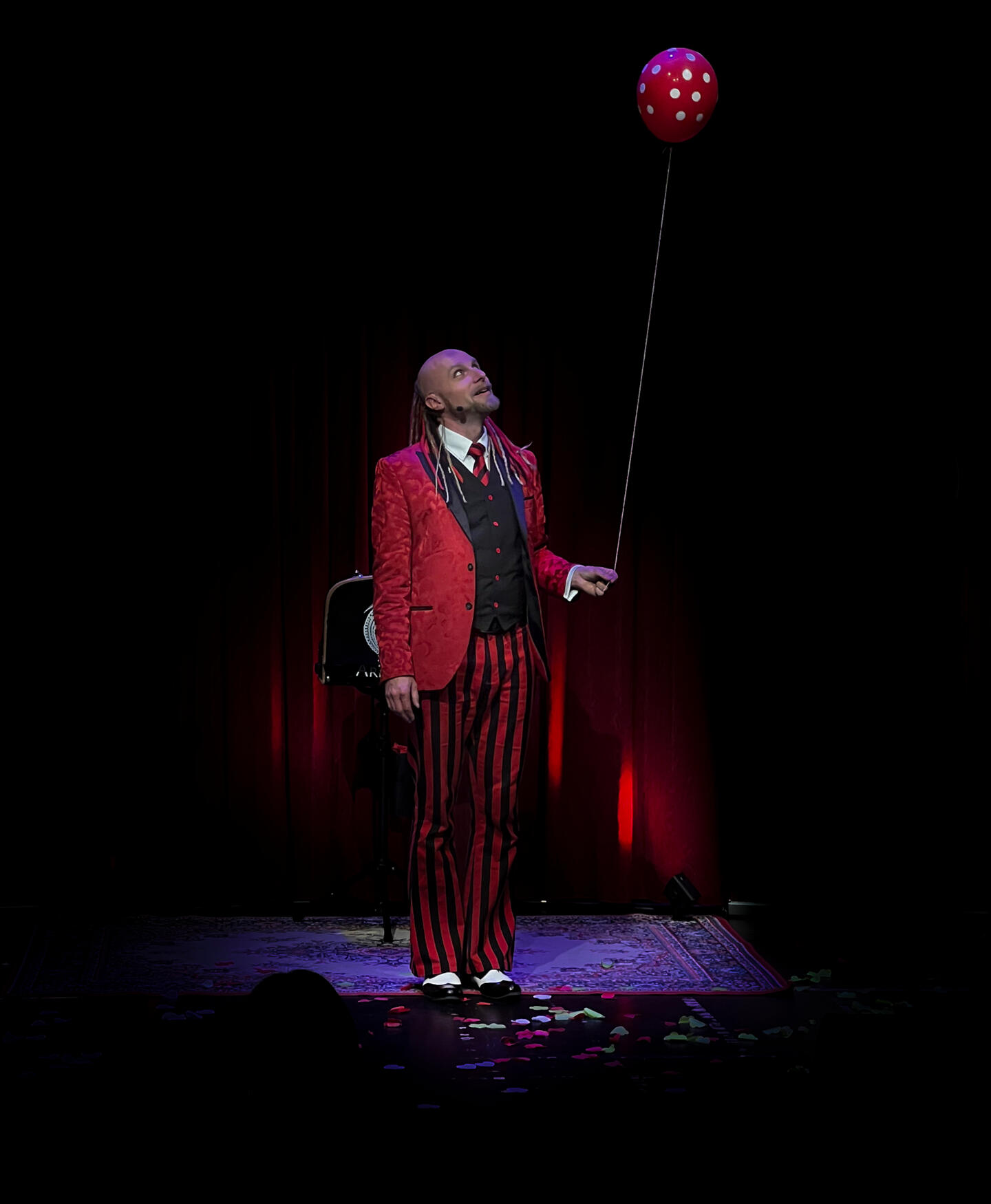 The show unfolds as a series of playful situations that gradually build, twist, and resolve. Moments of apparent chaos are carefully guided by timing, rhythm, and control, creating a feeling that anything might happen, but never actually goes wrong.Audience interaction is central to the experience and always handled with care. Volunteers are invited into the world of the show in ways that feel natural, safe, and genuinely funny, with the performer’s character leading every exchange.The energy in the room stays light, focused, and alive. The pacing allows laughter to land while maintaining momentum, making the show feel engaging from the first moment to the last. Whether viewed from the front row or the back of a large theater, the visual storytelling remains clear and easy to follow.The result is a performance that feels spontaneous and surprising on the surface, yet polished and intentional underneath a balance of playfulness and precision that works for audiences of all ages.